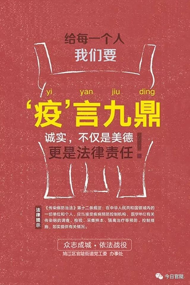 官陡街道党工委、办事处提醒广大市民:非常时期,不主动报告登记,隐瞒病情行踪,不接受检测隔离,不戴口罩进入公共场所等行为都要依法承担法律责任!守法,就是守护我们共同的家园!