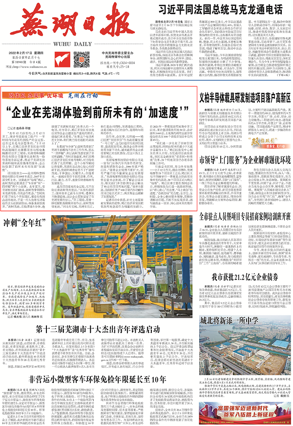 “企业在芜湖体验到前所未有的‘加速度’”